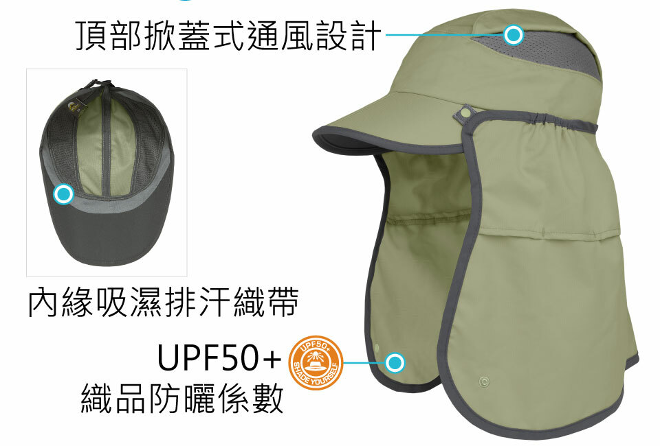 ● 頂部掀蓋式通風設計,保持頭部乾爽。
